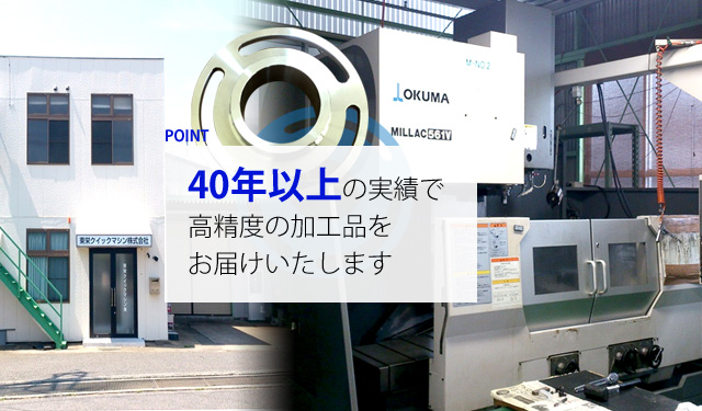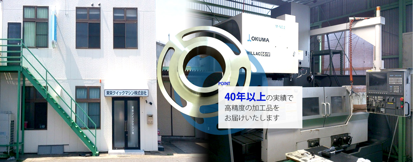 福島県いわき市にございます東栄クイックマシン株式会社では、マシニング加工・NC旋盤加工を始めとする各種部品加工・金属加工を得意としております。より皆様にご満足いただける高い品質を心がけ、日々の業務に努めております。小ロット品のご依頼や短納期のご相談など、お困り事がございましたら柔軟に対応・ご提案をさせていただきますためまずはご相談ください。